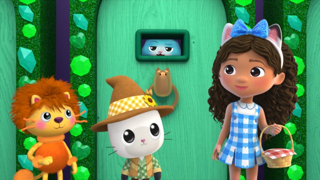 With the help of Pandy the Scarecrow, Baby Box the Tin Box, and Marty the Party Lion, she must go to Emerald Kitty City and meet the Wizard of Meow — dodging obstacles from “Bad Witch” Mercat along the way.