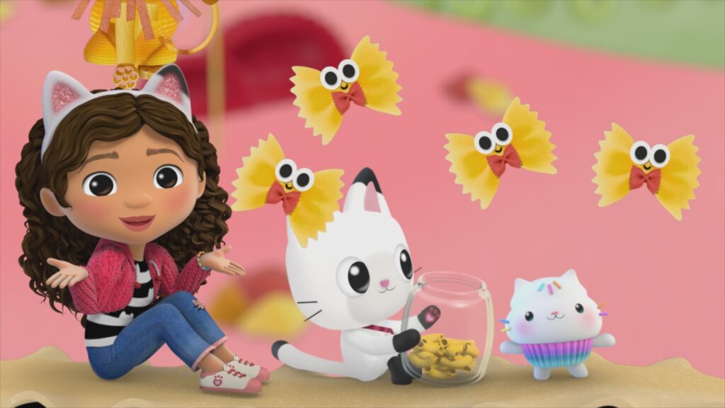 Cakey reveals an adorable mini eatery inside his kitchen cabinet. Gabby, Pandy and maitre d’ CatRat help Cakey get all the things he needs to get his tiny restaurant ready for his tiny customers, the Hamster Kitties.