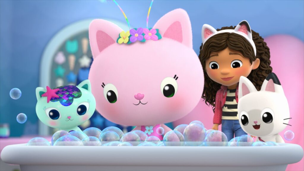 Gabby and the Gabby Cats take their Kitty Bears to the Fairylandia Spa to prepare for Kitty Fairy’s magical Tea Party that transforms the Kitty Bears to life.